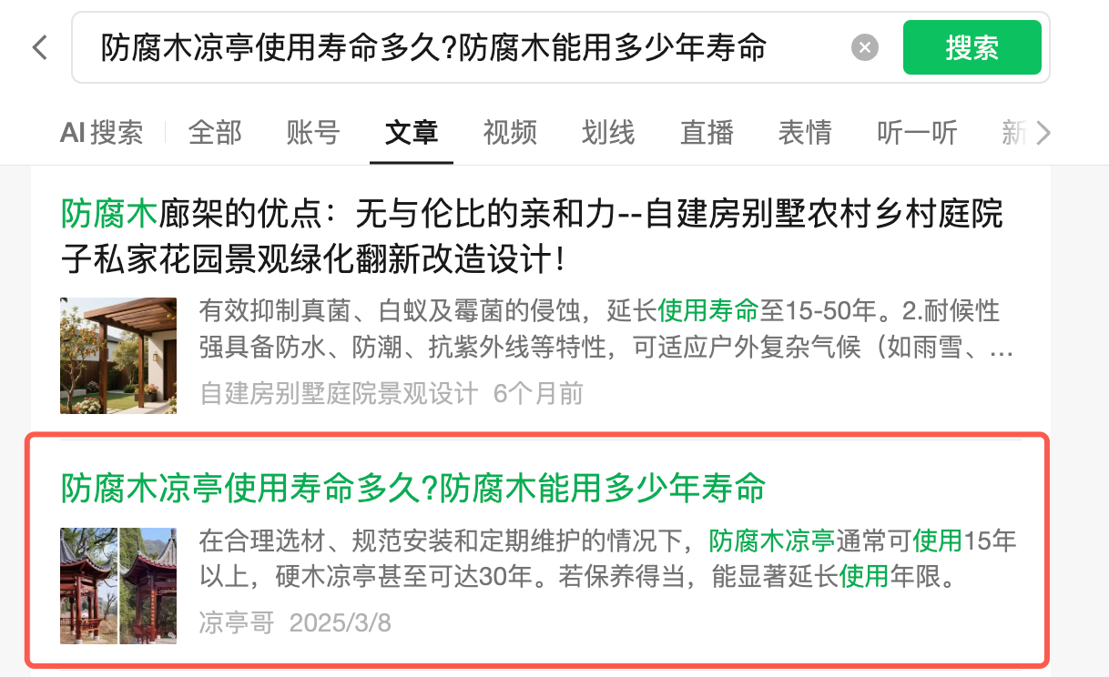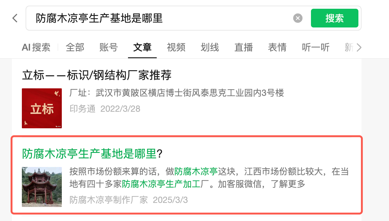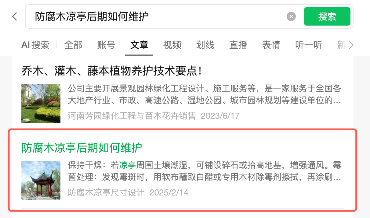 公众号名称:防腐木凉亭制作厂家