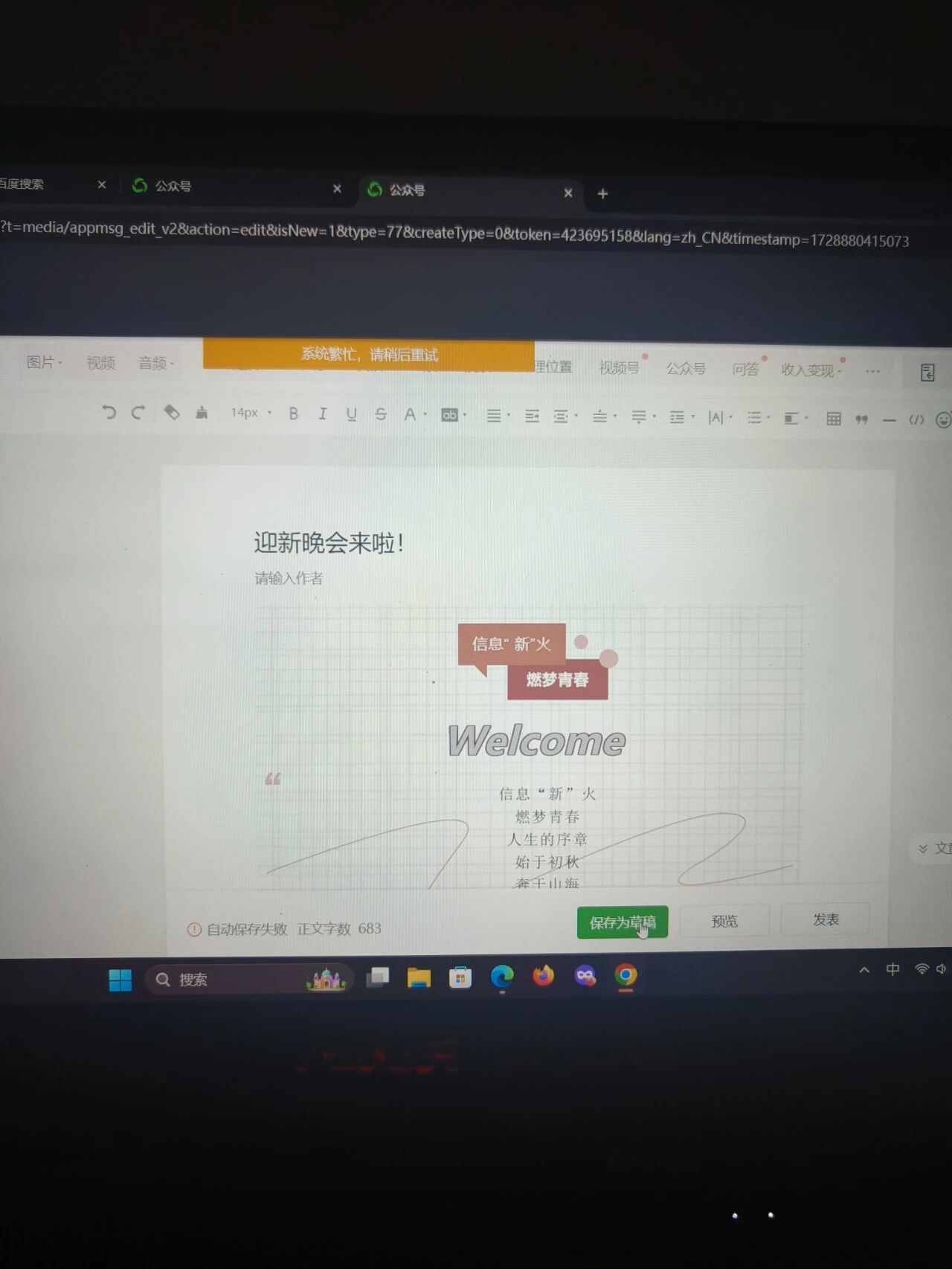 无论是保存为草稿还是预览或发表都显示这个,发布不了