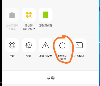 微信7.0.12版本中,新增加了“重新进入小程序”按钮。