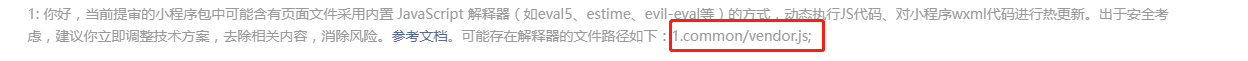 自己在代码里面搜一下,是不是用了 具体违规案例中的代码. 去掉对应的代码试试.