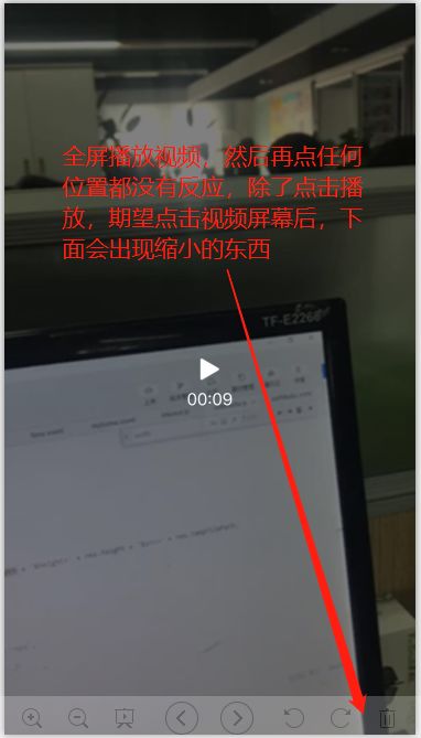在全屏的情况下,视频播放完毕,点击初播放按钮以为的地方,下面的会消失,在点击的时候不会出现。