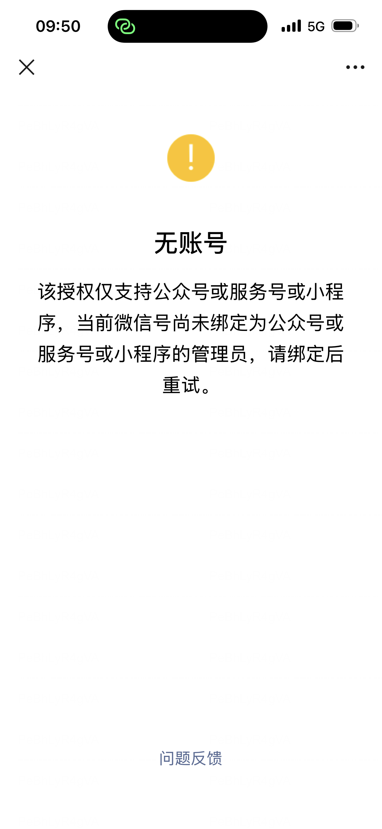 你好,请参考 https://developers.weixin.qq.com/doc/oplatform/Third-party_Platforms/2.0/troubleshooting/authorization_troubleshooting.html#%E4%BA%94%E3%80%81%E5%95%86%E5%AE%B6%E6%8E%88%E6%9D%83%E6%8F%90%E7%A4%BA%E6%97%A0%E6%B3%95%E6%8E%88%E6%9D%83%E3%80%81%E6%97%A0%E8%B4%A6%E5%8F%B7 自助排查