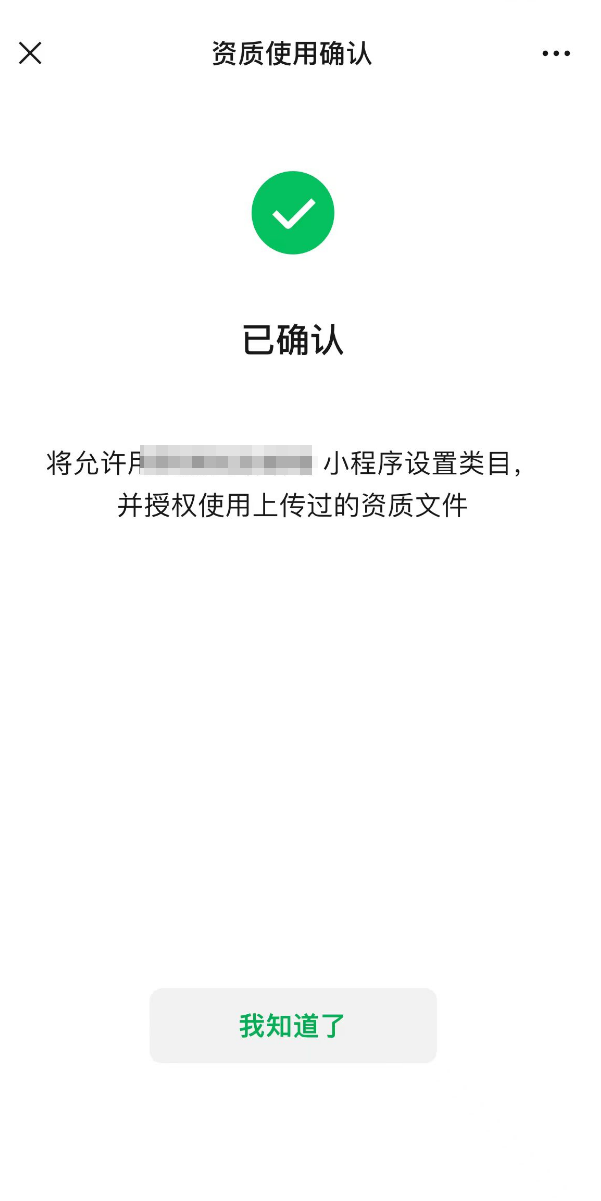 4、管理员微信「 确定 」添加类目,通过验证。