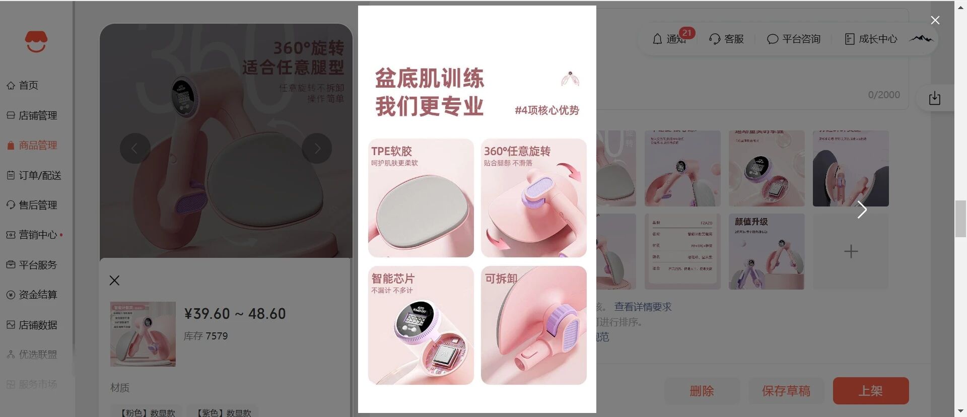 复核结论:该商品为盆底肌训练用品,涉及产后医疗器械,平台未开放商品,无法售卖。