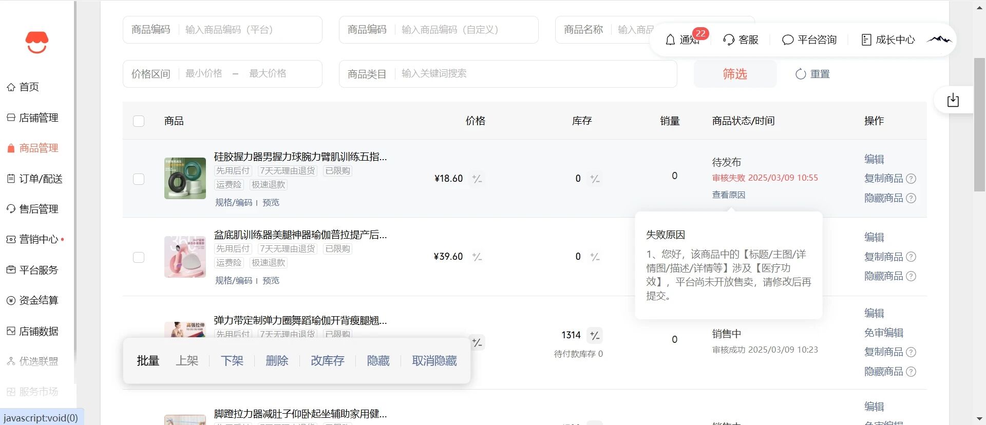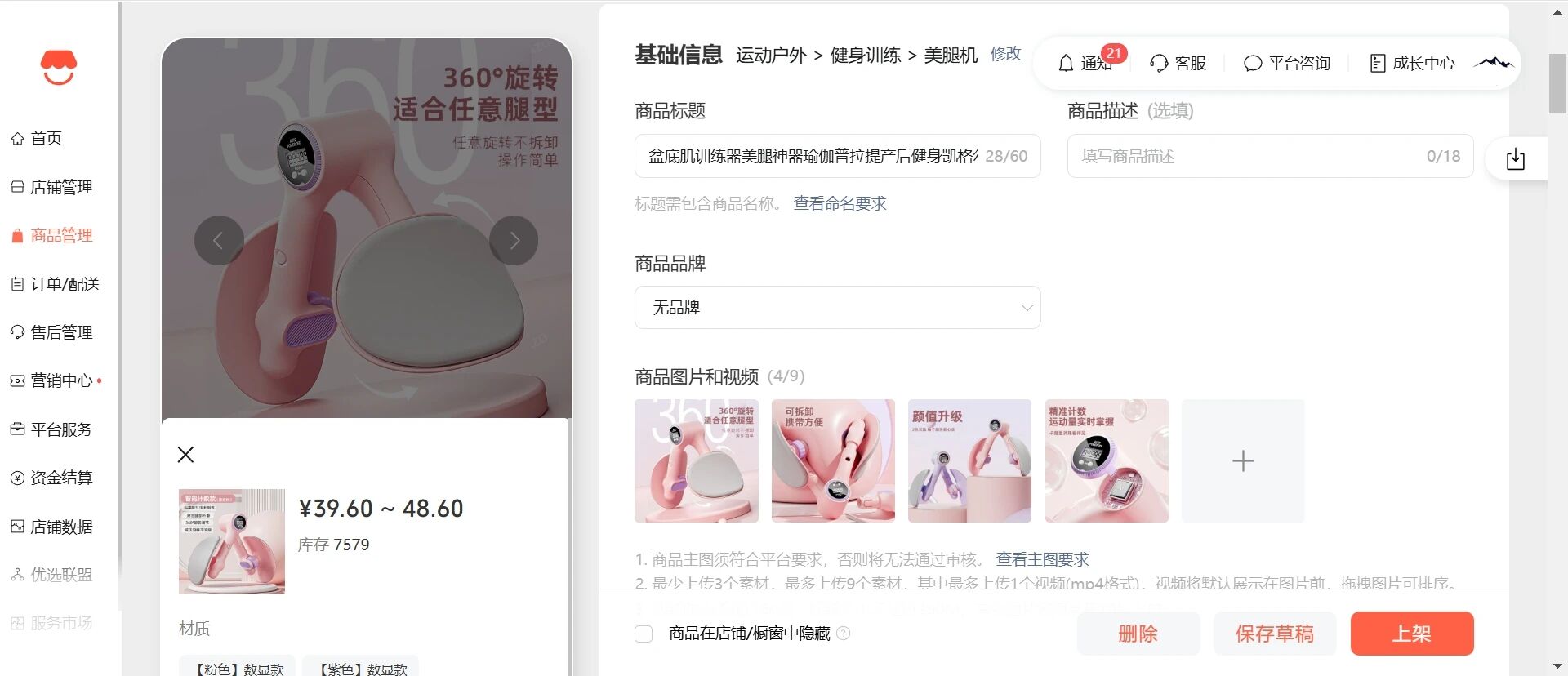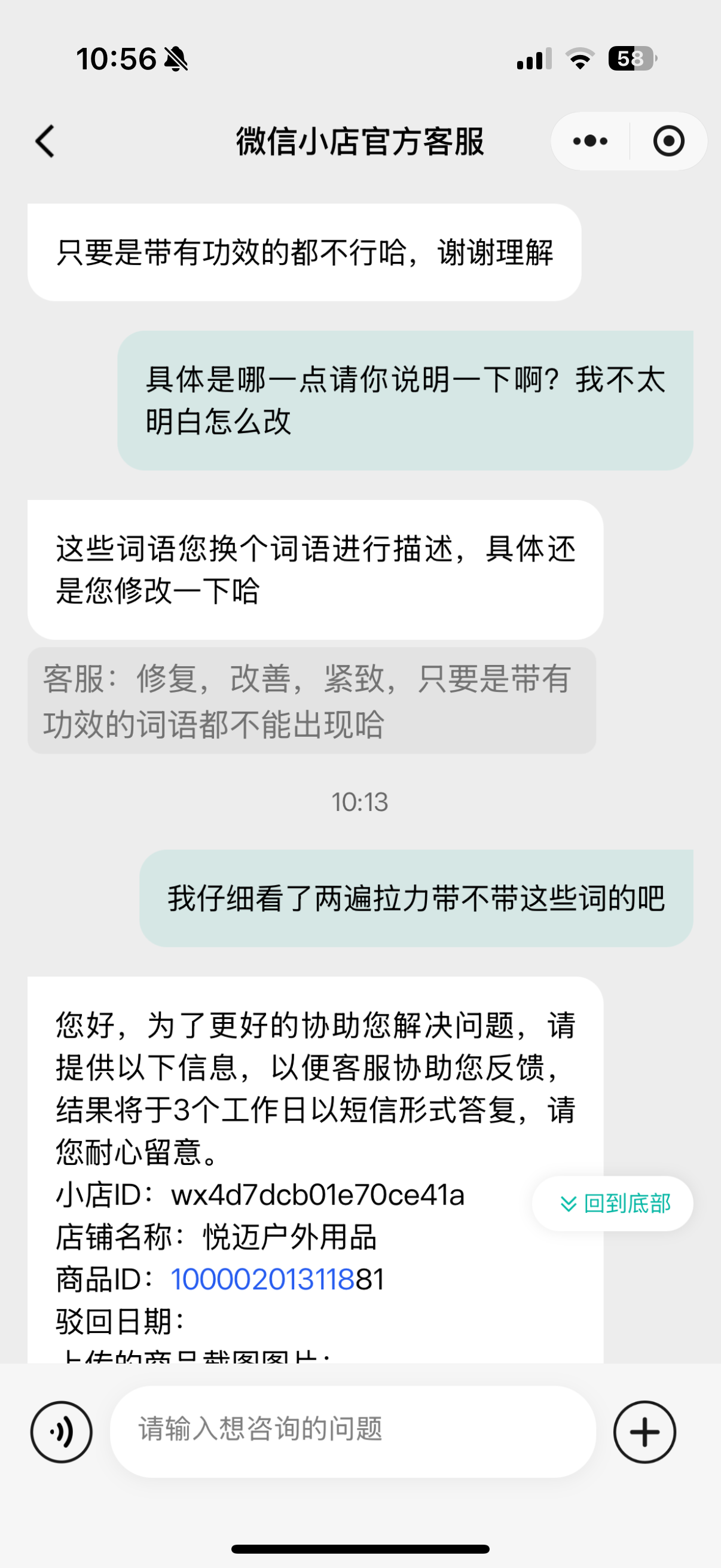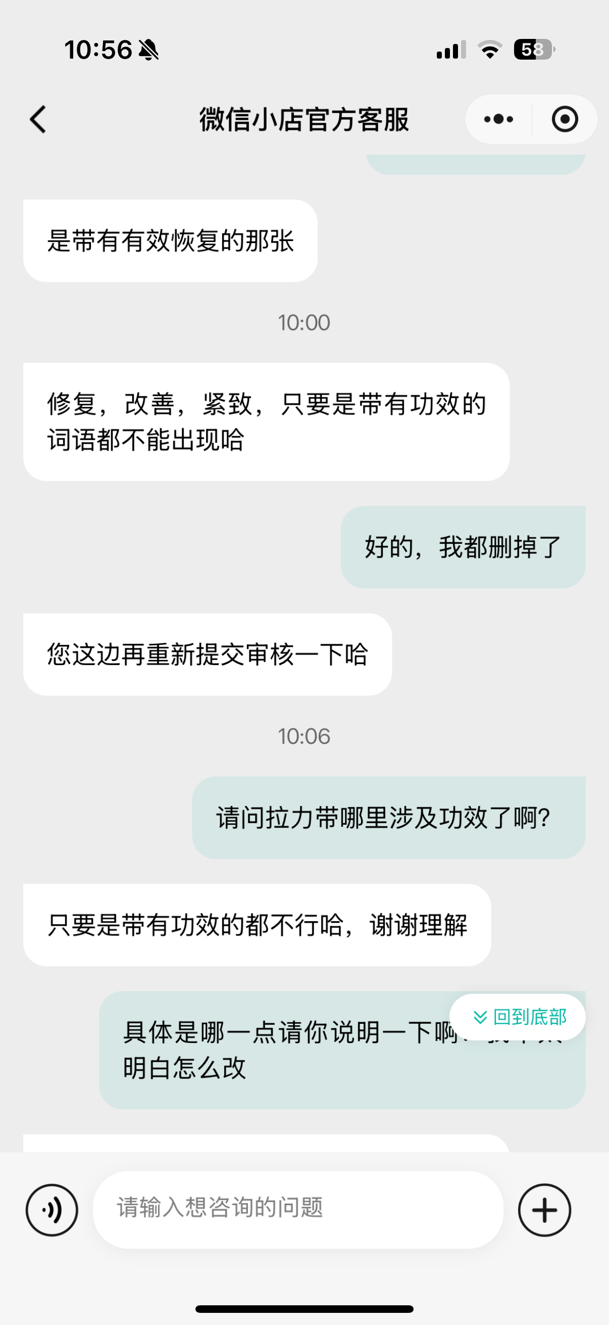上了一个美腿器的品,审核一直以涉及医疗功效不给通过,具体的图片我放出来,请问是哪里存在医疗功效了?客服说的都修改过了,还是没有通过,最后说失败多次违反平台规则不给通过,一个上午就提交了两个品,一直耗在上面,能否改进一下
