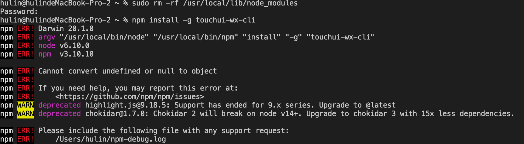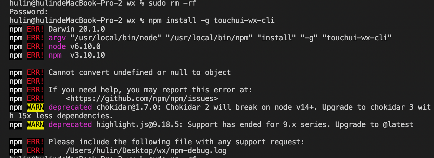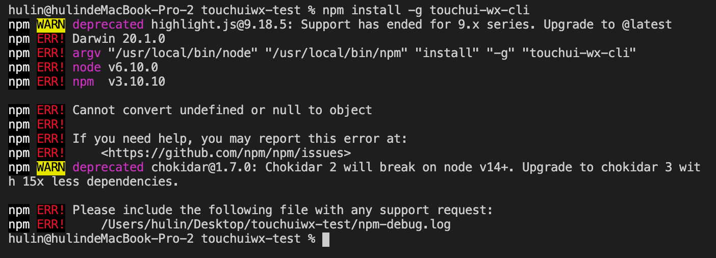 在使用Touch WX的时候,安装touchui-wx-cli一直失败,请问要怎么解决
