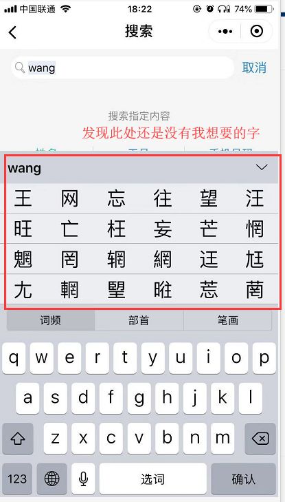 1、在微信小程序有搜索输入框的地方输入【wang】