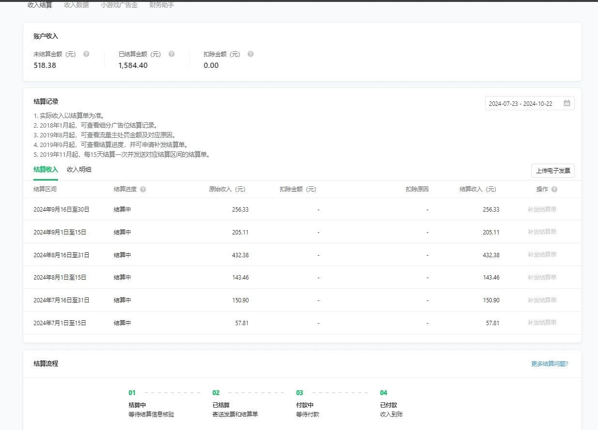 为什么流量主一直显示结算中啊,七月份的还是结算中?