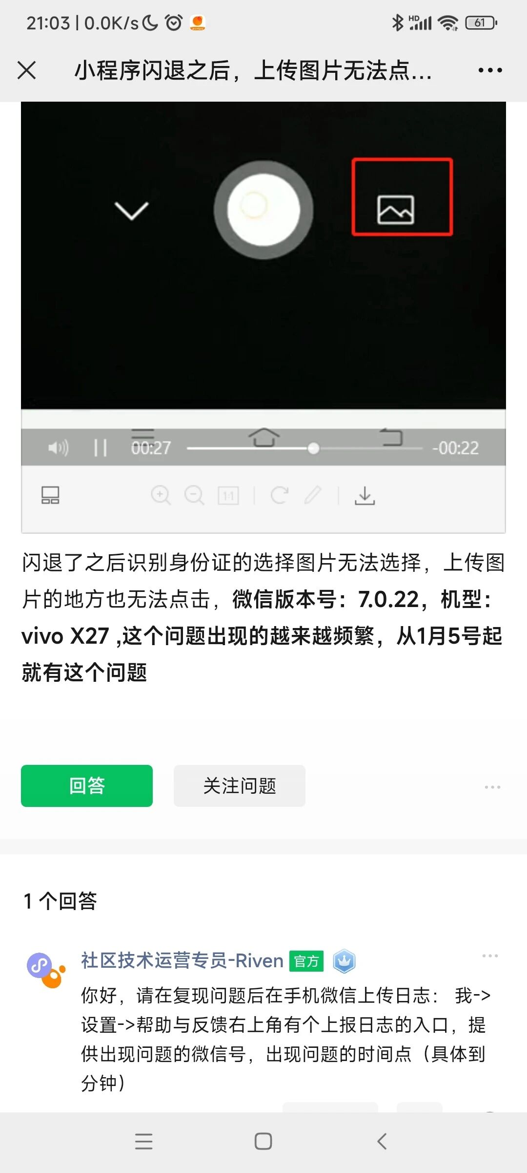 微信不能上传图片到所有小程序,也检查了手机设置相册访问权限,更换另一个微信号也可以上传图片,改怎么办?