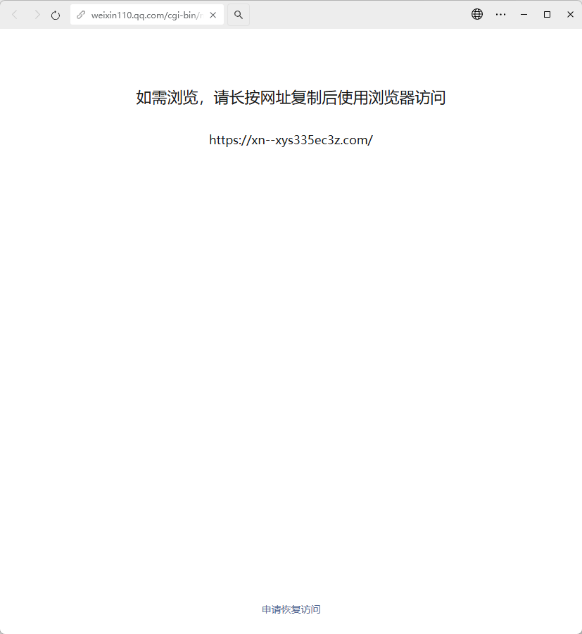 域名https://xn--xys335ec3z.com/n被误封已经在腾讯腾讯网址安全中心申诉通过为什么微信测扫码还是被拦截?请恢复域名使用