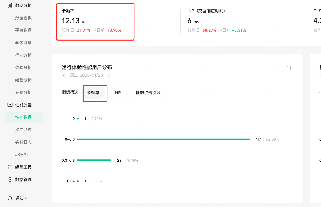 在 we分析->性能质量>性能数据>体验性能中,有个卡顿率的指标,这块的指标是什么来的?有什么相关说明吗?