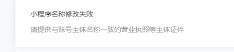 审核结果一直提示上图,我们的公司营业执照是‘保和健康’。名字想改成‘保和健康专家端’。这个有什么问题吗