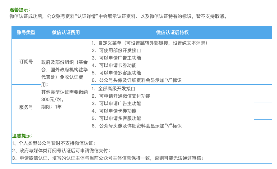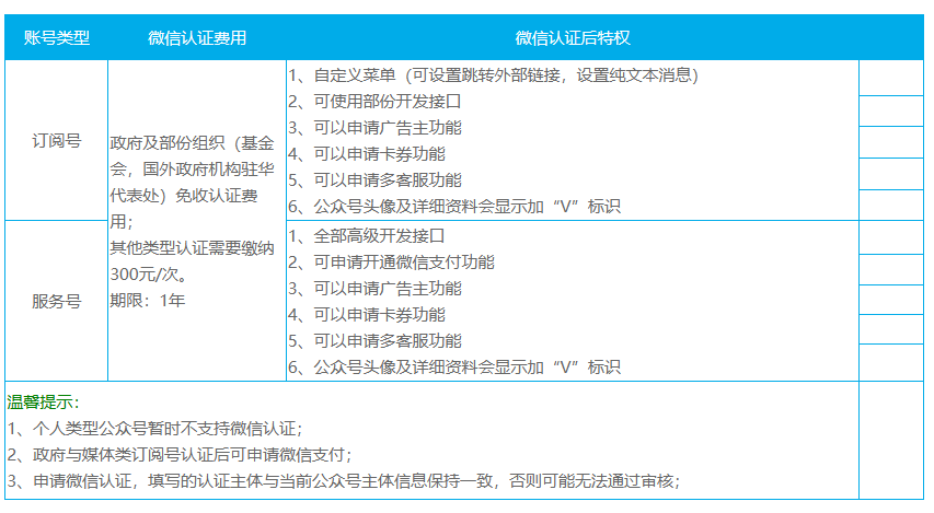 企业可以通过认证来获取,一些接口和特权。如果只需要发表内容的话,两者相差不大。