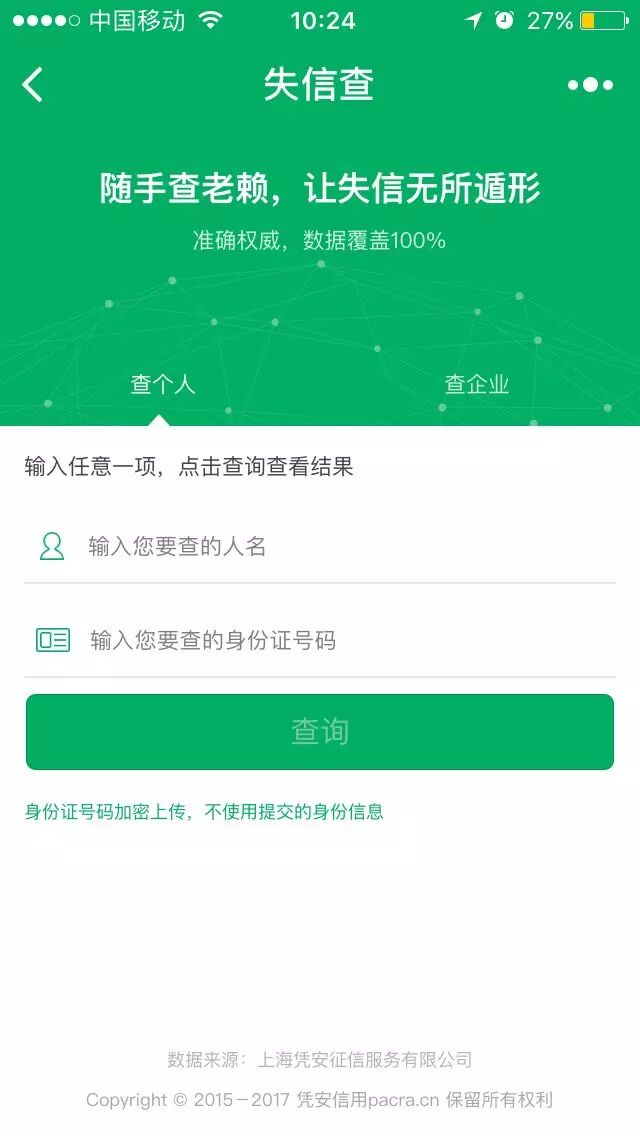 像“失信查”都是允许输入身份证号码的,而且也是线上审核通过的!