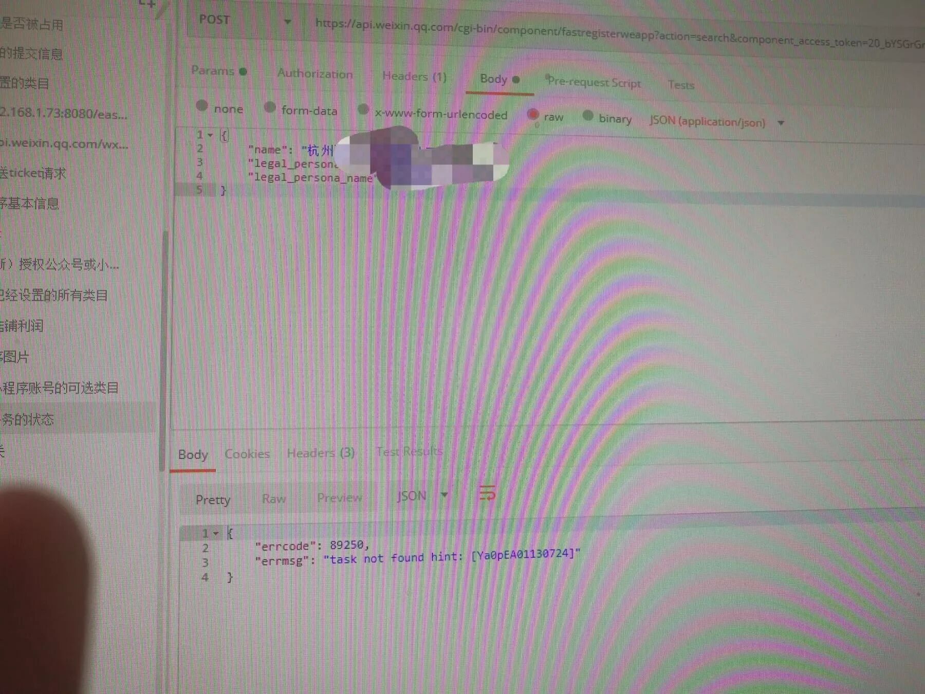 之前调用创建微信小程序接口,一直没有问题,会很快下发微信模板消息,之前这个流程一直没有问题,这两天,用企业微信创建小程序接口时,微信返回json数据显示是成功了,然而并不下发认证模板消息,(微信号是对的),并且调用查询创建任务状态接口,会报(89250)未找到该任务的错误信息,且24小时内可以重复调用创建微信小程序接口,在正常情况下,24小时内重复提交创建申请,微信会报"该主题已有任务执行中,距上次任务24h后再试",望大佬们