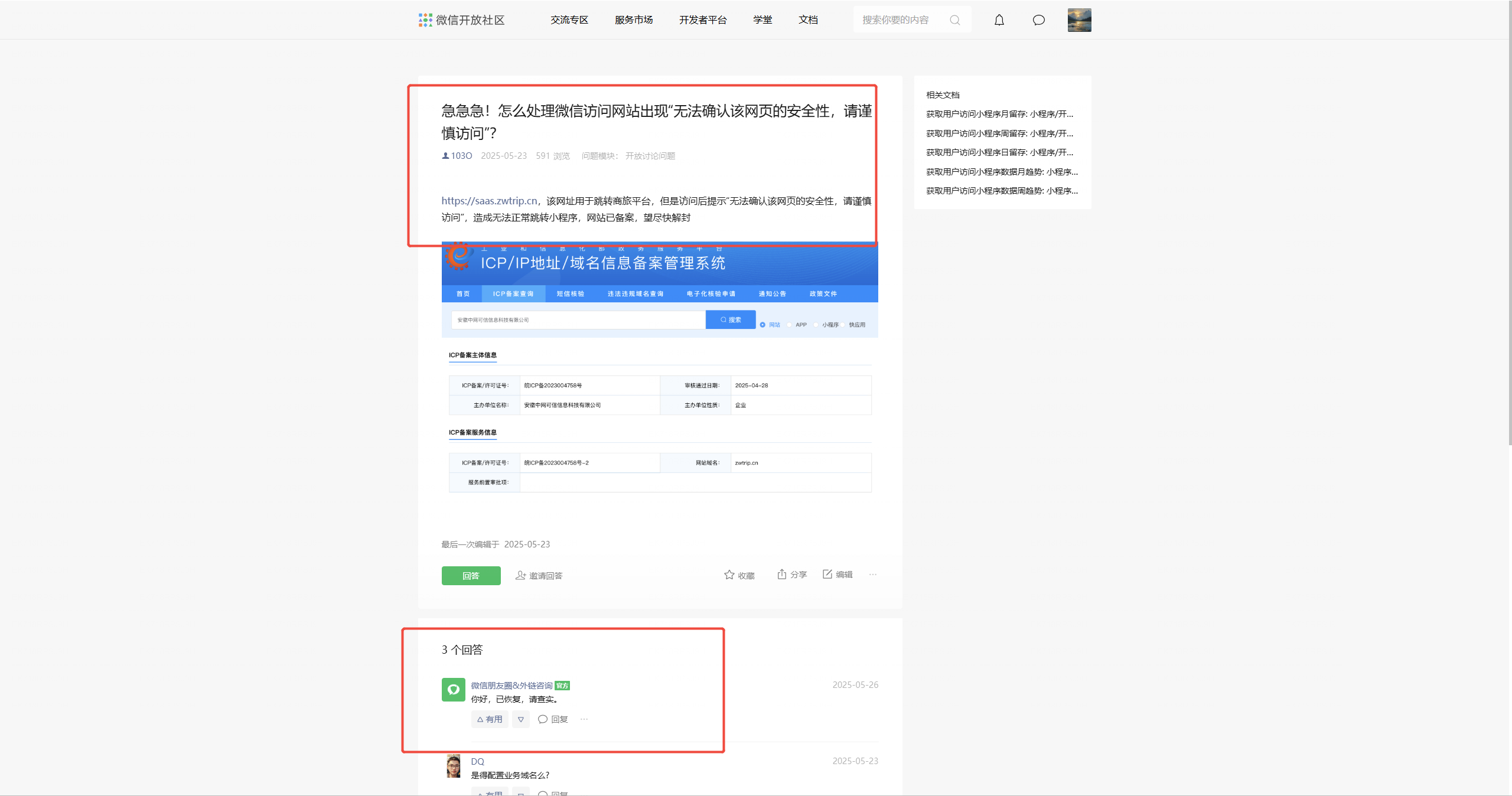 saas.zwtrip.cn网址通过微信公众号单点登录提示“无法确认该网页的安全性,请谨慎访问”,已经上线很久了,之前在社区也问过,还是未解决。