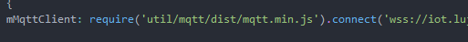 //mqtt.connect('wx://xxxxxxxxxx', options);//wx:// xx.xx.xxxxxxx//协议版本 链接地址//微信小程序这个版本 作者自己封装了一层 wx表示普通的ws协议连接 wxs表示加密之后的wss协议连接。找到解决办法了嘛