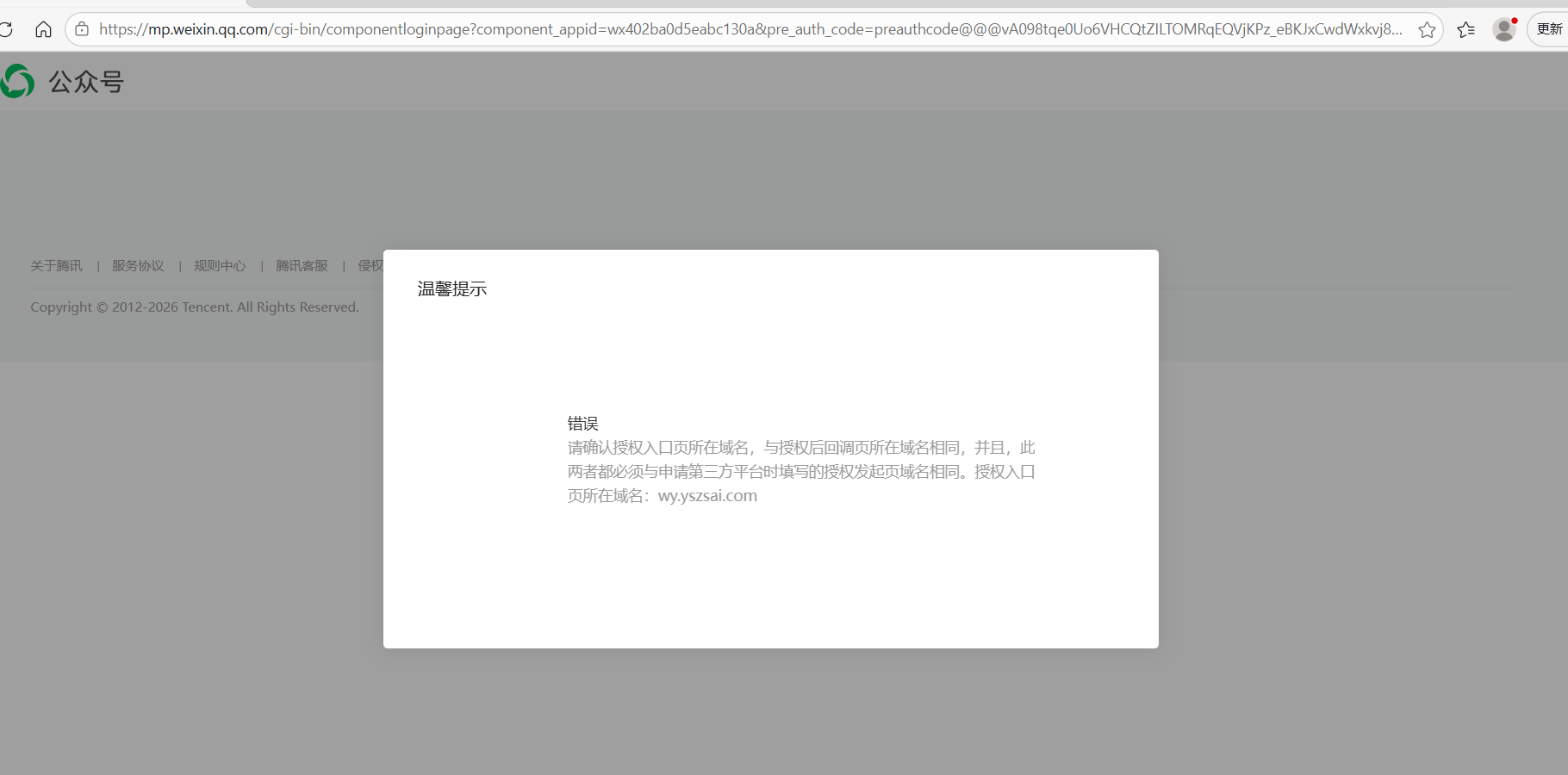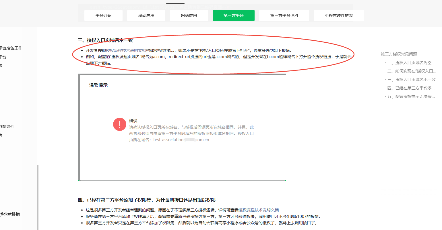 2、报错问题参考 https://developers.weixin.qq.com/doc/oplatform/Third-party_Platforms/2.0/troubleshooting/authorization_troubleshooting.html 自查