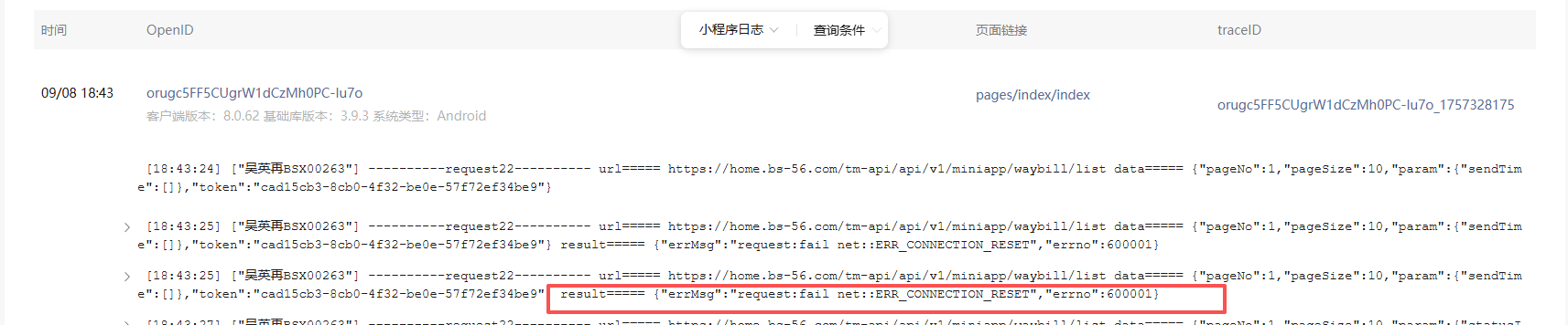 特定地区微信原生小程序请求接口报错"errMsg":"request:fail net::ERR_CONNECTION_RESET","errno":600001 如何解决 最近十天特定地区电信网络大规模报这个错误,很着急