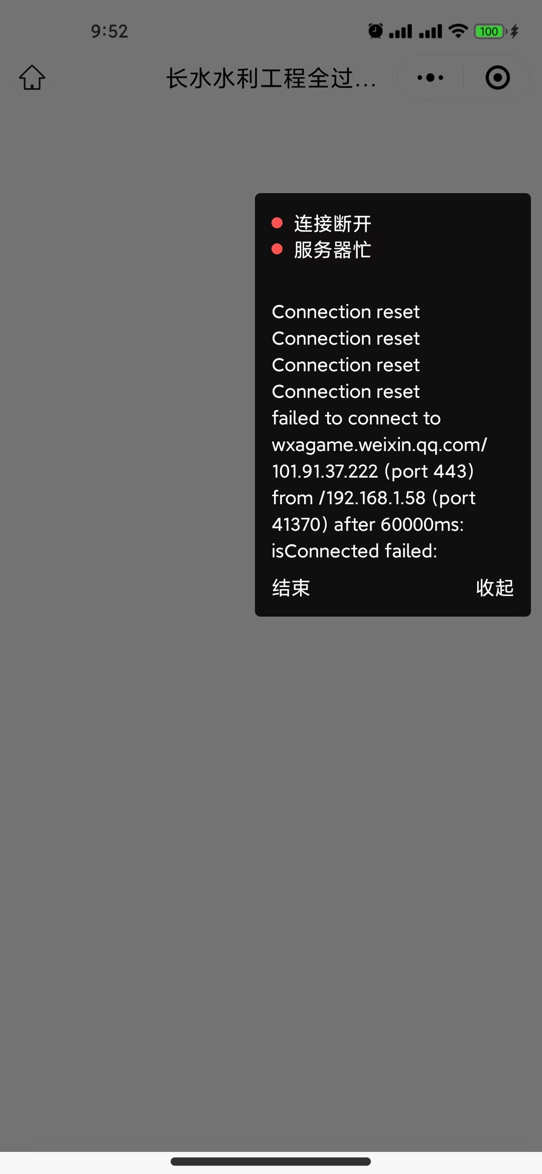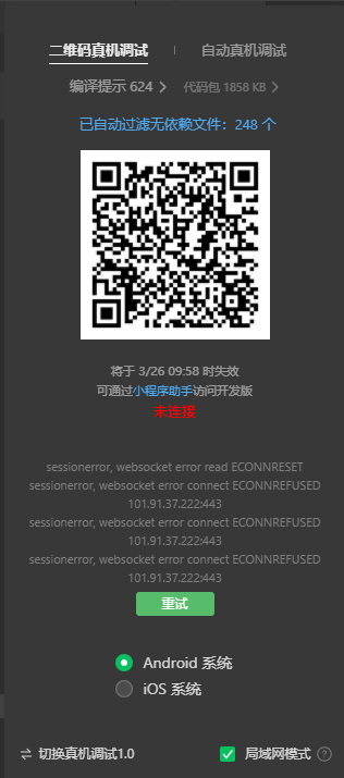 关闭局域网模式,切换到广域网模式,手机小程序也无法连接