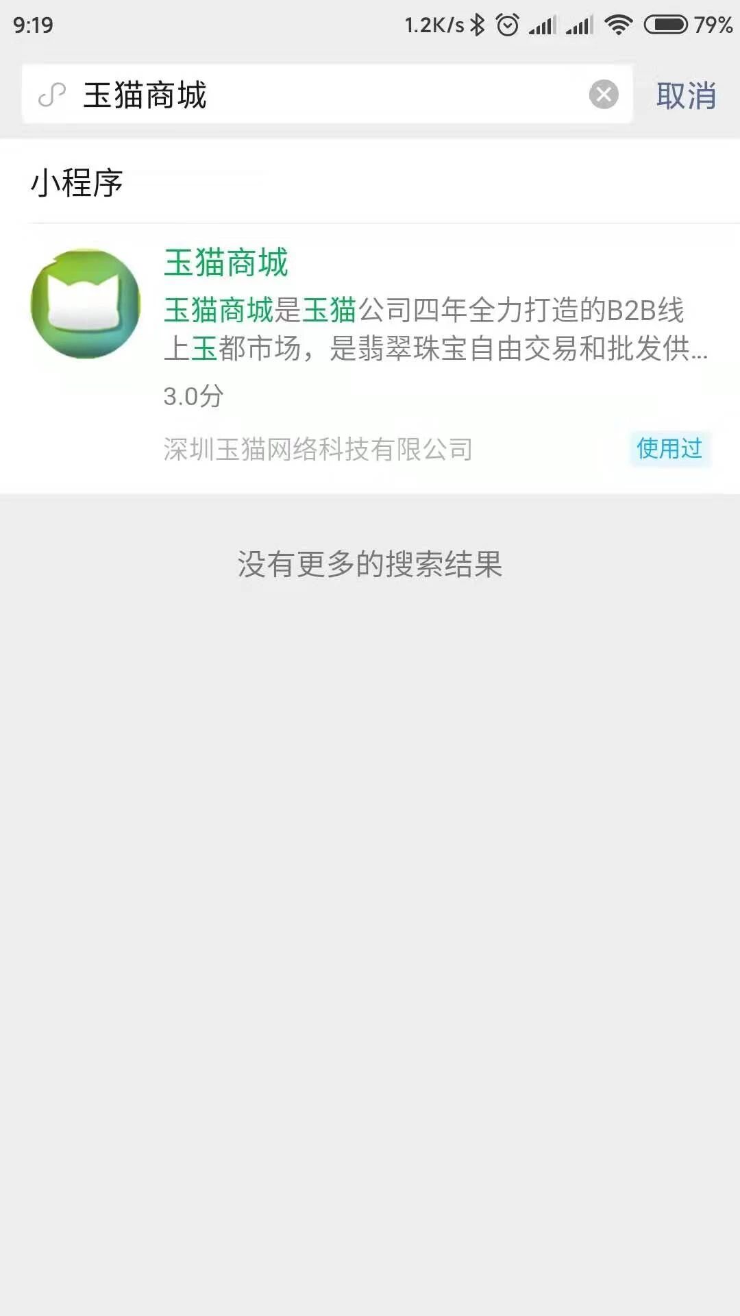 通过微信的搜索小程序,输入“玉猫”,搜索不到“玉猫商城”的小程序,必须输入全称才能搜索到,如下图。这个问题对于我们很急切,恳求官方工作人员协助解决,谢谢! APPID wx3cbb9b5059bf073c