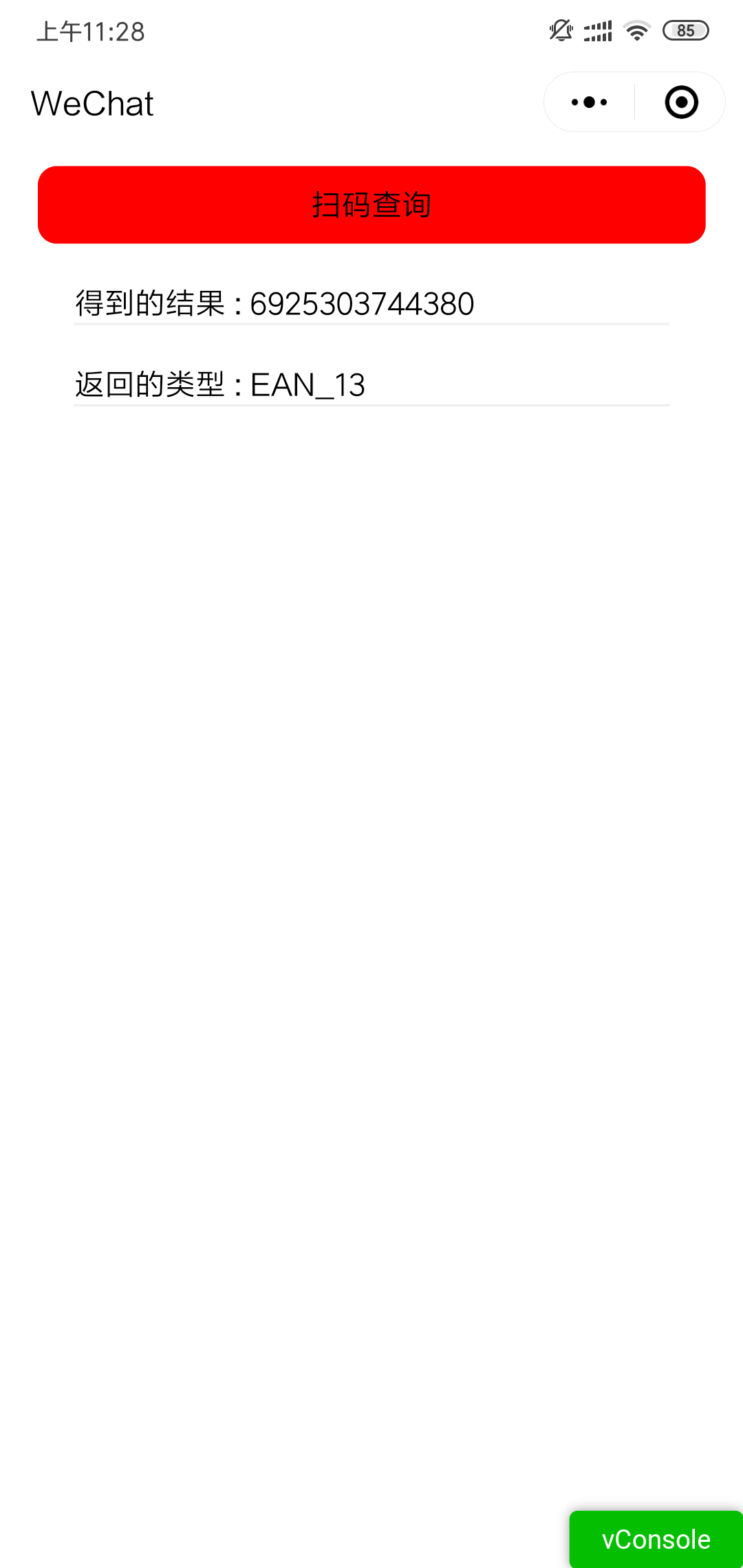 确实,IOS 会返回EAN 一维码的类型 ,而安卓只会返回 扫描结果 并且没有EAN类型 头疼