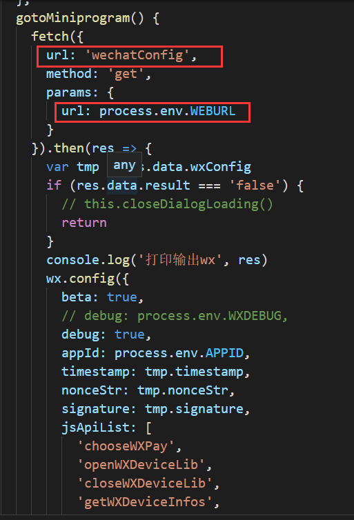 debug: false, // 开启调试模式,调用的所有api的返回值