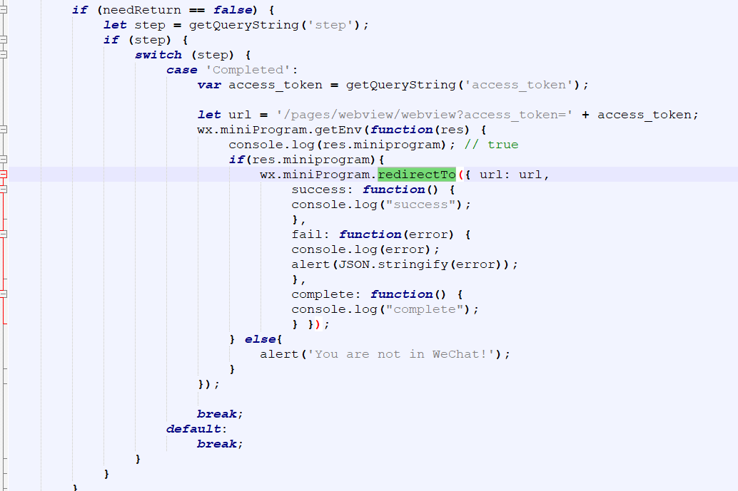 如标题:小程序web-view中跳回小程序(wx.miniProgram.redirectTo),华为P20 Pro无法成功,报“invokeMiniProgramAPI: permission denied”,其他手机如小米,apple,VIVO又正常。请问是什么原因?谢谢。