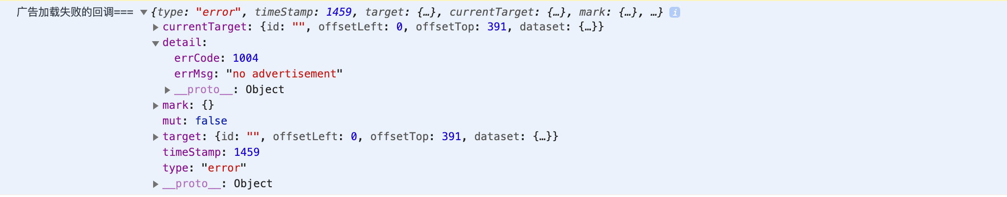 你好,请参考文档说明:https://developers.weixin.qq.com/miniprogram/dev/api/ad/RewardedVideoAd.onError.html