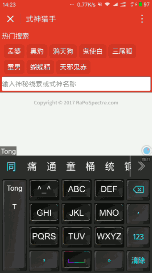 有点迫不及待想做一款自己的微信小程序,我在GitHub上搜索找了些开源小程序项目,测试了几款,比如:咩咩单词,有的不完整,有的还有些Bug。后来,找到了一款“阴阳师妖怪搜索小程序”用来测试玩玩。看别人是如何做一款微信小程序的,然后自己再去研究学习模仿,这是为了防止走弯路,最快的方法。我测试了几款小程序后,也开始慢慢熟悉了代码构成、小程序的能力、可以用来做什么、发布前的准备、如何上线等等问题。由于使用的都是第三方的开源项目,我也没有修改图片、图标、配色、内容等,就是提交了上传,没有申请上架,只是想用来测试一下练练手看看效果怎么样。第二天的收获还是蛮多的,收集了很多资料和工具可以备用,比如:找了第三方的一些UI组件(wux:微信小程序自定义组件),微信小程序模块化开发框架(Labrador)、WeCOS(微信小程序COS 瘦身解决方案)、小程序的统计分析平台(阿拉丁)等等。