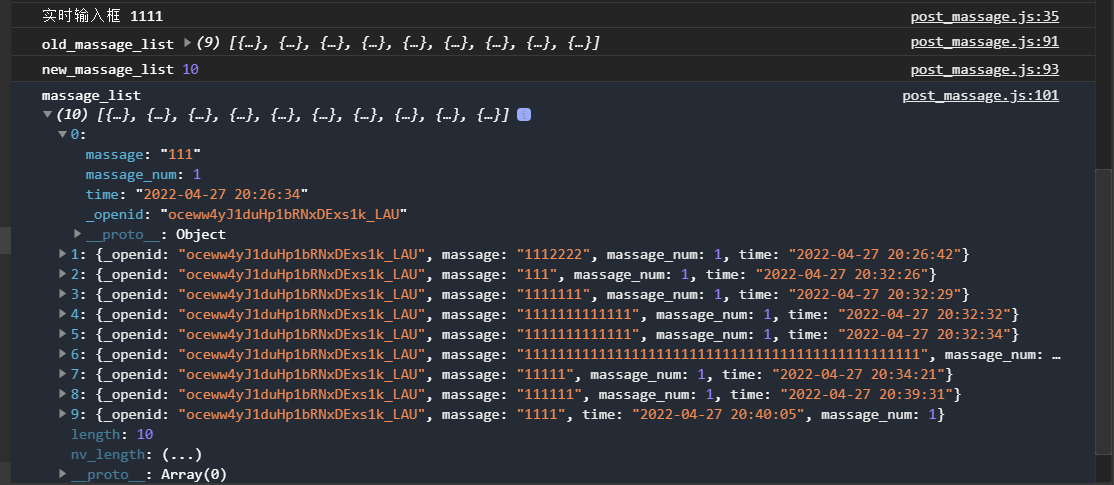 赋值给了 old_massage_list, push后赋值给一个新的数组 new_massage_list