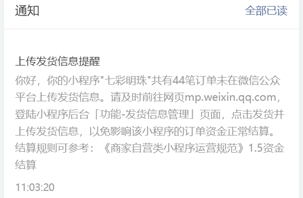 小程序收到提醒要进行发货信息管理,但小程序后台没这个功能。
