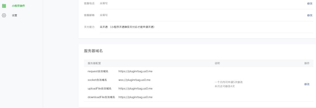 开发工具上提示的域名列表是小程序的域名列表,而不是插件配置的服务器域名列表,这个是因为我配置的有错误,还是插件这个功能有问题呢,如果是因为配置错误,求大神指点如何能访问到插件设置的域名