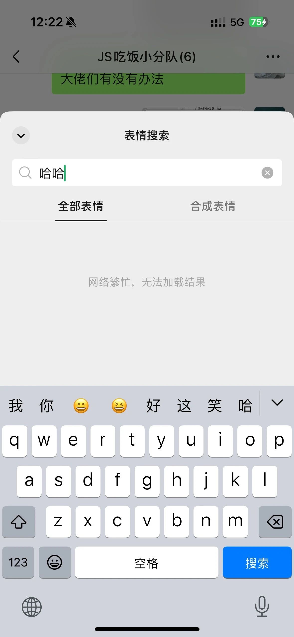 问题描述:微信聊天页面-点击表情后弹出的表情面板-点搜索按钮进行表情搜索-提示“网络繁忙,无法加载结果”。目前该问题已持续一个月左右