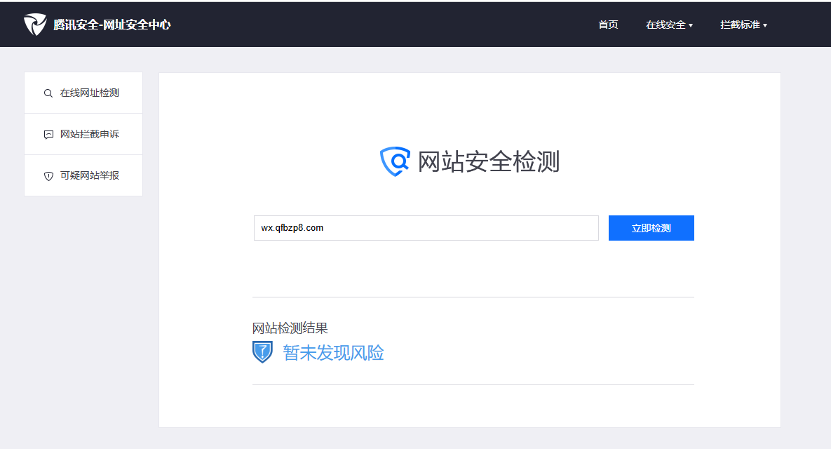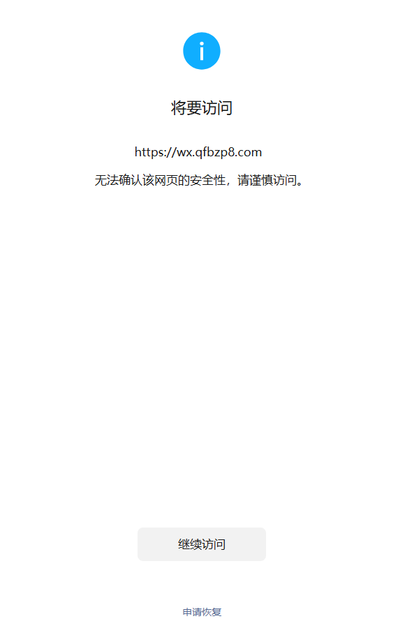 你好,域名wx.qfbzp8.com备案是正常的,微信访问网站出现“无法确认该网页的安全性,请谨慎访问”,经检查网页里没有不安全的内容,且已进行过备案,腾讯安全-网址安全中心检测也没有发现风险,请核实后帮忙解除拦截,谢谢。