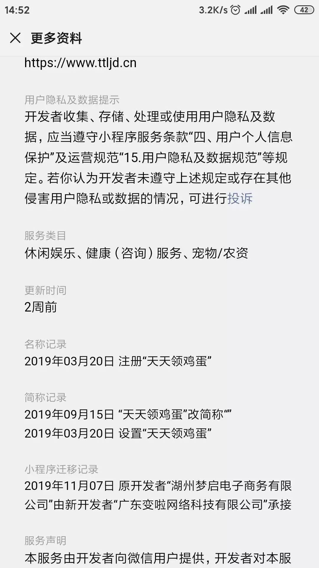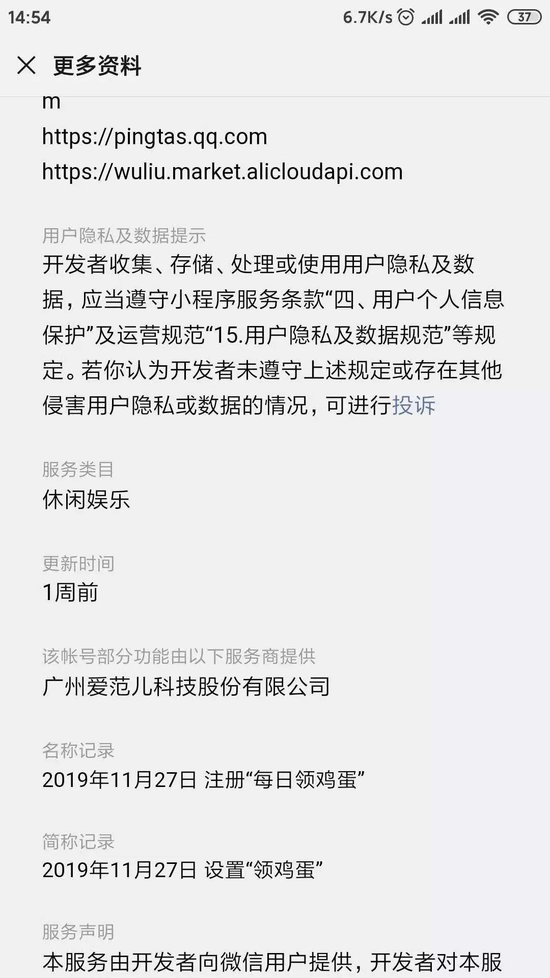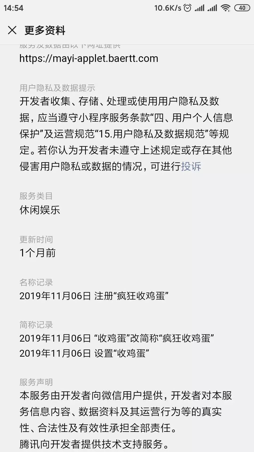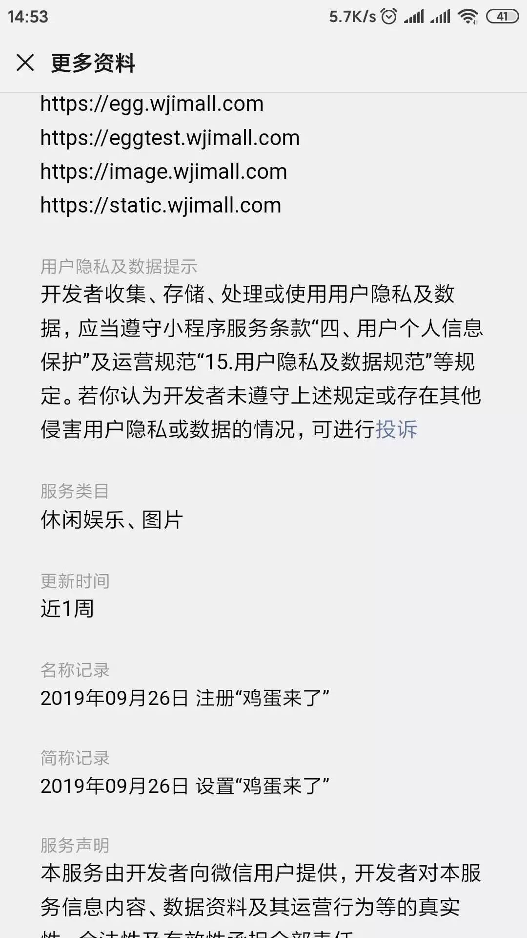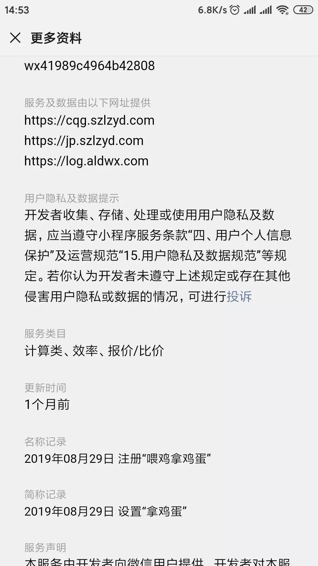 目前我们看了很多同类的,我们模仿对象的小程序,比如“天天领鸡蛋”,“喂鸡拿鸡蛋”,“鸡蛋来了”,“疯狂收鸡蛋”,“每日领鸡蛋”,“0元领鸡蛋”等等,他们都是 选择了休闲娱乐”和“宠物/农资”。但是他们都能正常发版更新,而我们却一直卡住审核,我们觉得这样实在是有失公平。