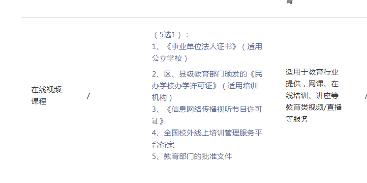 你好,涉【教育-在线视频课程】类目,需提交资质(5选1):