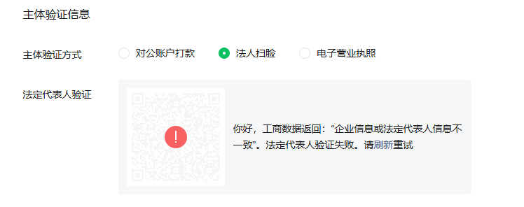 法人是我本人对的,为什么一直显示返回错误啊?