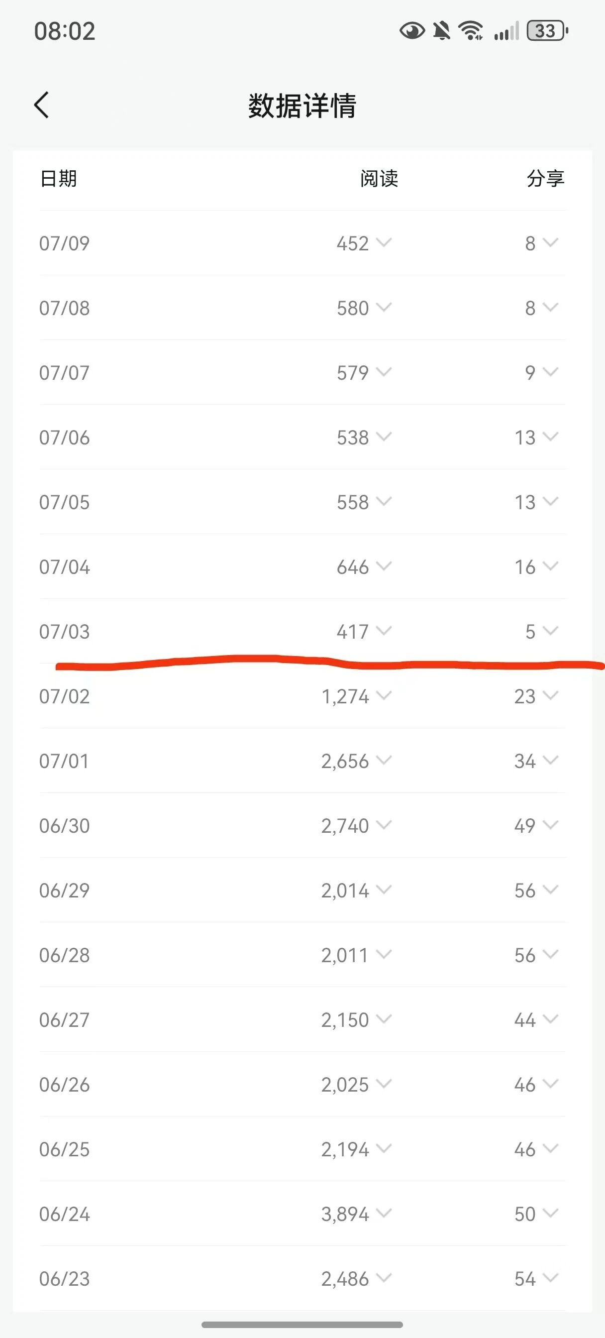 尊敬的腾讯官方审核团队: 您好!我是公众号(图个好看呀)的运营者,账号原始ID为[gh_4cda38f23c55] 。在此诚恳地向您申诉,希望能解决我公众号文章被限流的问题。近期我的公众号文章出现了严重的限流情况,具体表现为:阅读量、点赞数、在看数,新关注人数等数据与以往相比大幅下滑,尤其是从7月3日开始,呈断崖式限流趋势。推荐比例也是一天天下降,到今天7月10日的推荐数据已经降为0推荐了。