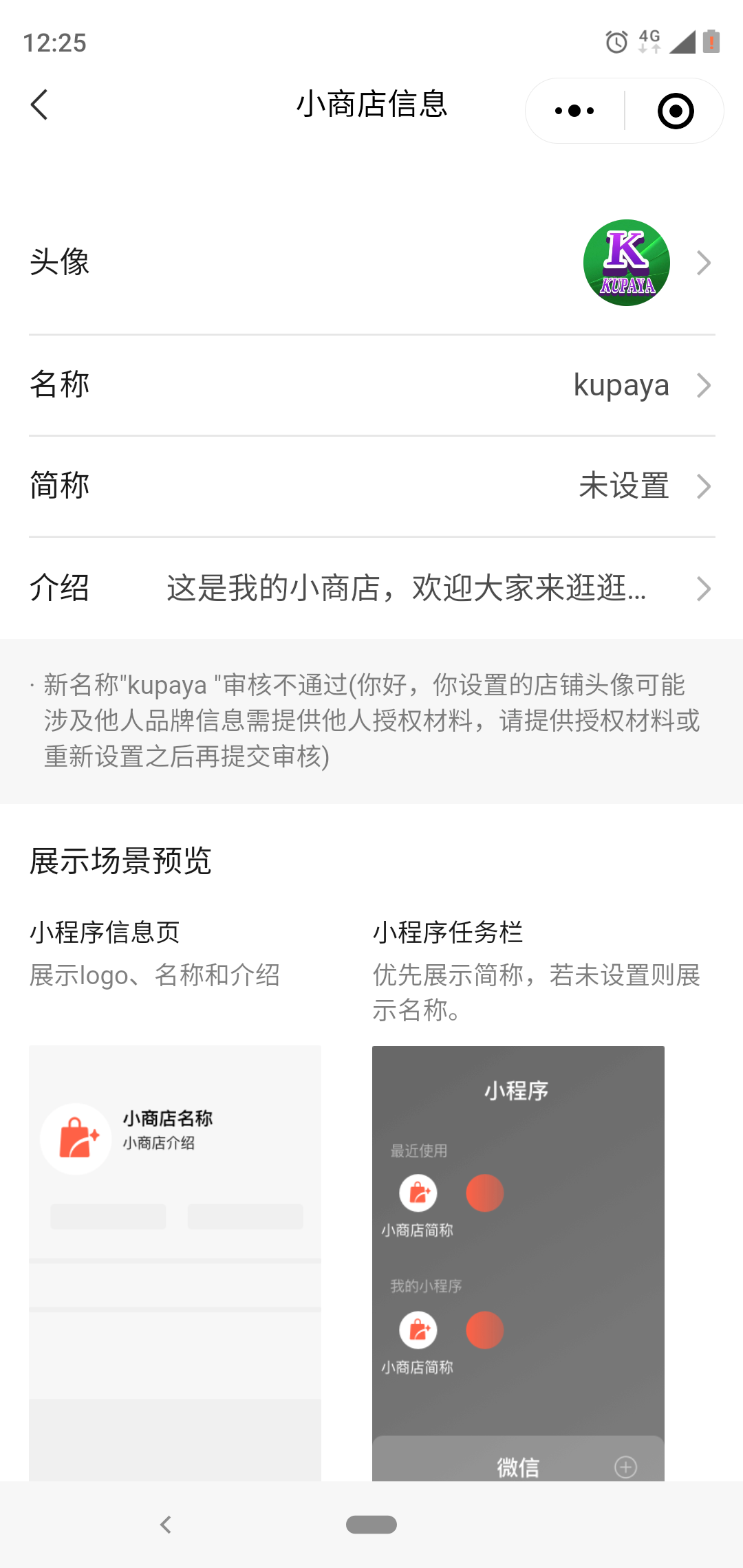 你好,请根据页面审核提示修改头像或补充相关资料;更多命名规则可参考小商店特别规范-微信小商店店铺名称命名规则: