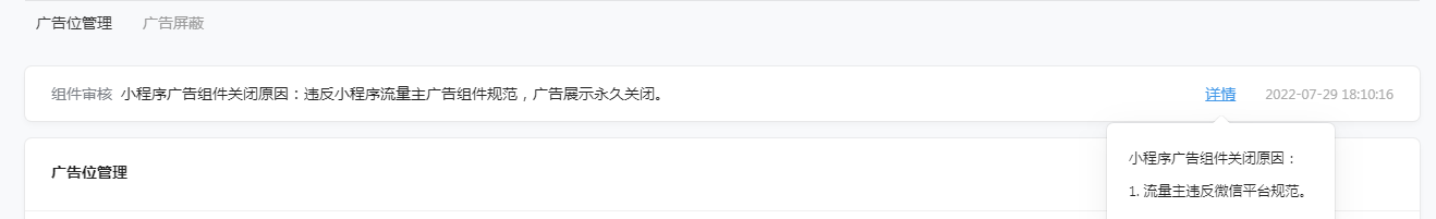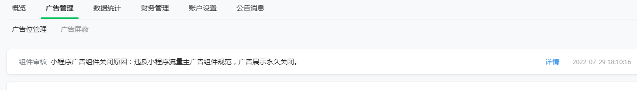 之前我的小程序被恶意举报直接被封号了,封号后提示广告组件也被关闭了,