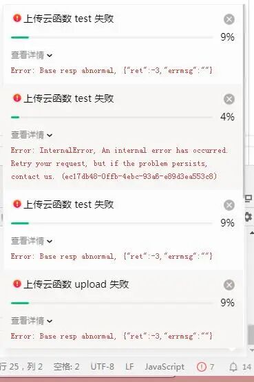 唉快处理啊 云函数老是更新失败 我都重启几次电脑了