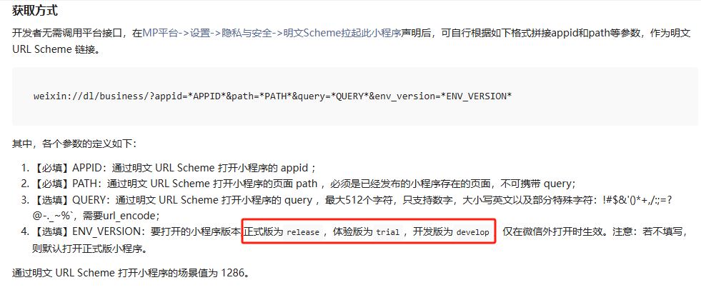 weixin://dl/business/?appid=*APPID*&path=*PATH*&query=*QUERY*&env_version=*ENV_VERSION*