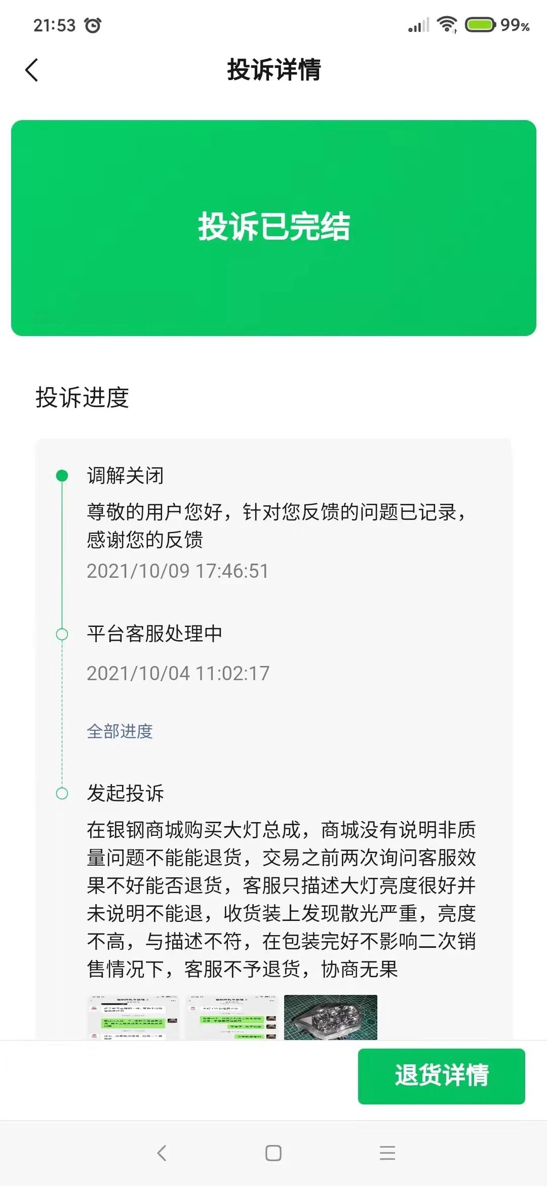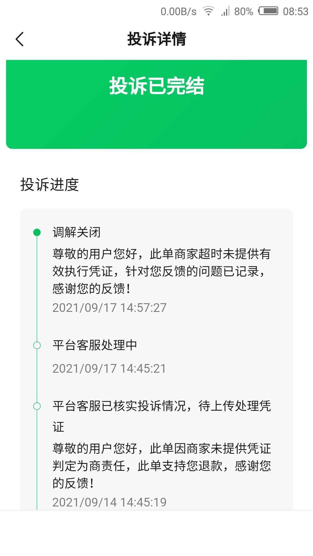 真黑呀,不过你的投诉起码有了结果,商家受到了一丁点的处罚,我在小程序里买的东西不满意要退款,商家不同意,客服介入后判定允许退款,按发货地址退回去之后,商家不处理退款也不回应投诉,就这样直接就完结了。真是日了狗,我都抑郁了。