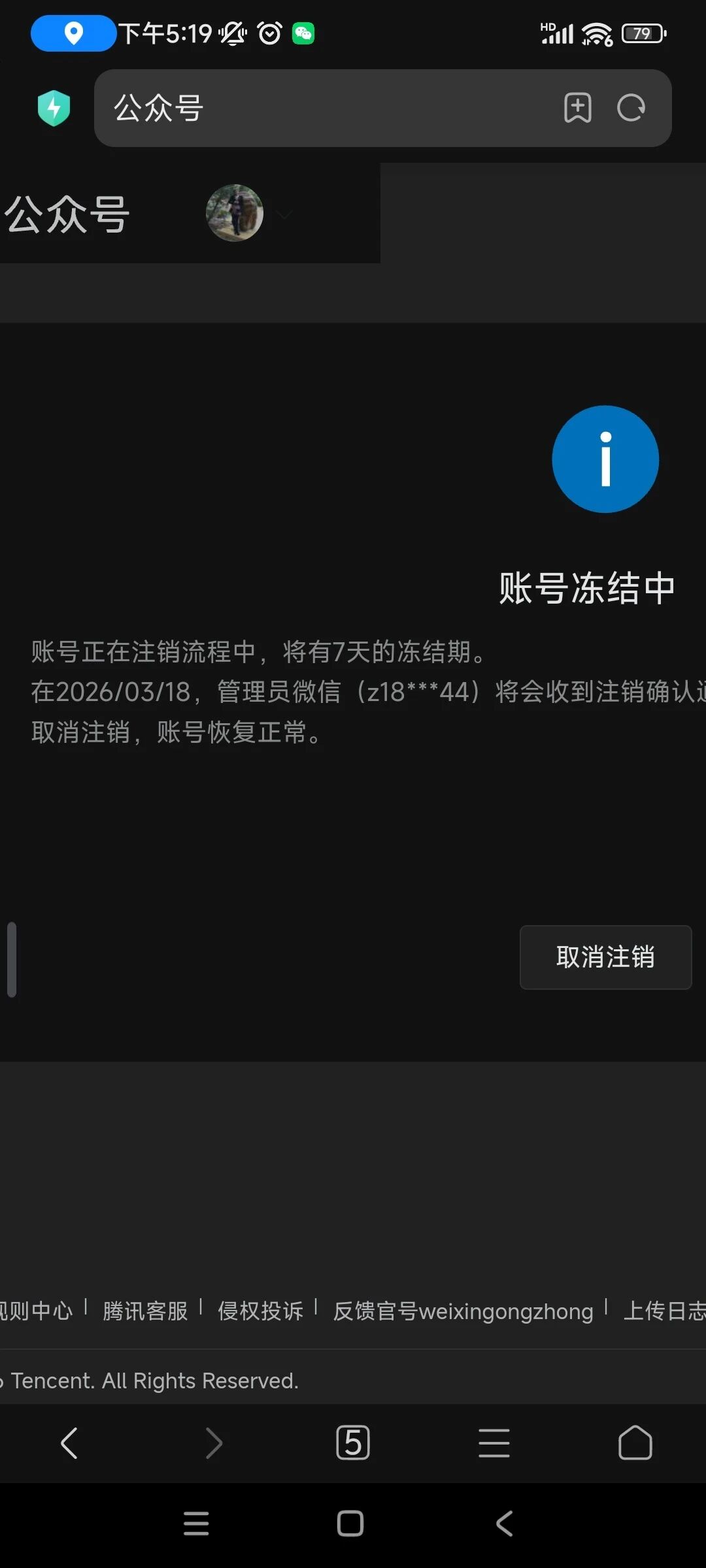 您好,我的公众号正在注销流程中,但原管理员微信已被封禁,无法接收注销确认通知,麻烦协助人工完成注销,以便我重新注册新号。 公众号信息: - 原始ID: gh_ac6b8753c35c