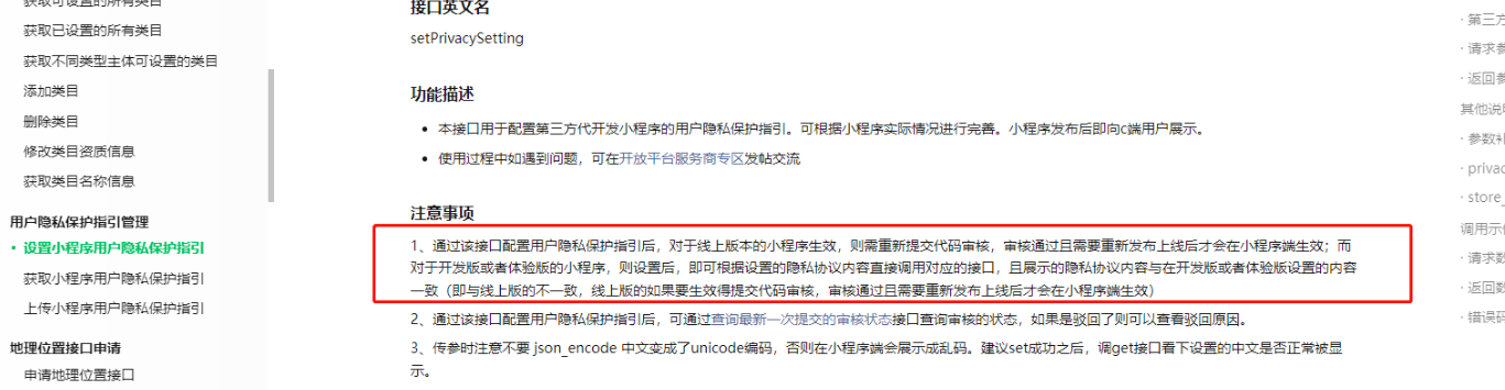 根源在于使用服务商接口提交的隐私声明只是"开发版",不经过管理人员审核,类似于一个"草稿".这个版本是无法调起隐私监听的.