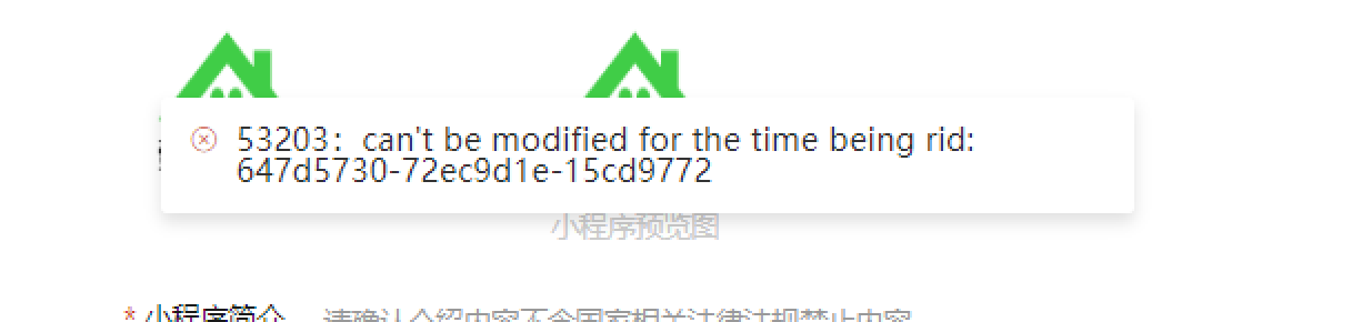 申请开通小程序,到最后一步提交简介和头像的时候报错: