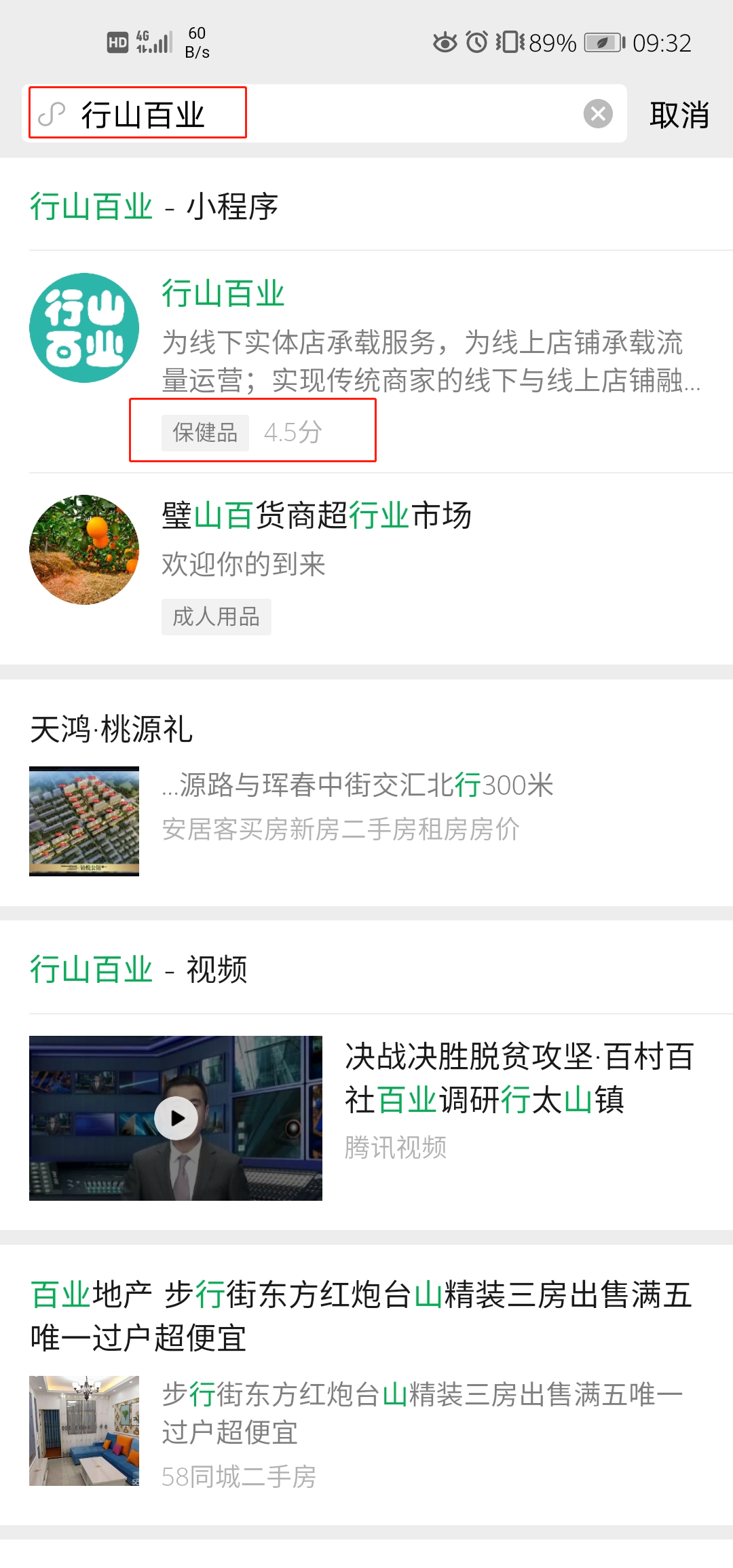 打开微信的微信小程序搜索栏,搜索“行山百业”小程序后,标签显示为“保健品”,与我们的小程序实际运营的业务和服务类目不符,不知道如何修改,很着急