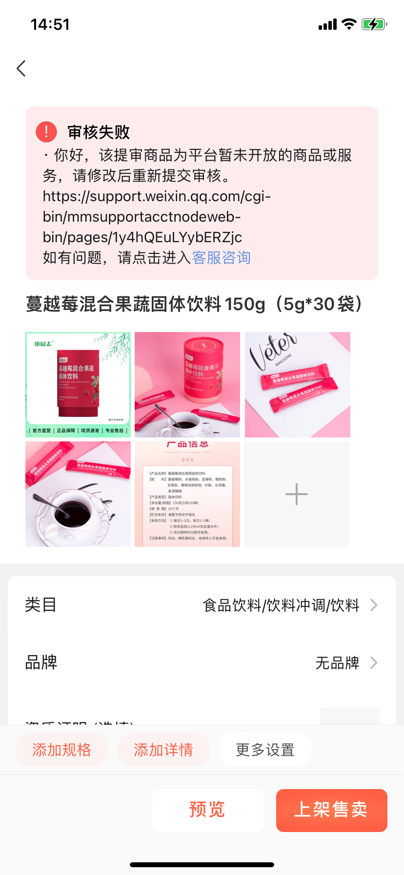 这个产品属于禁售商品,所以一直提示平台暂未开放商品