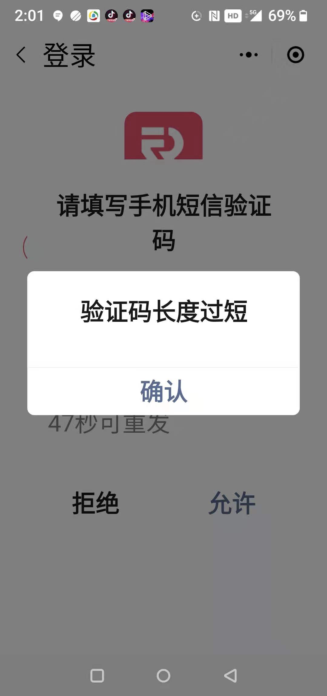 小程序登录,验证手机号,需要输入短信验证码,输入以后,提示验证码长度过短